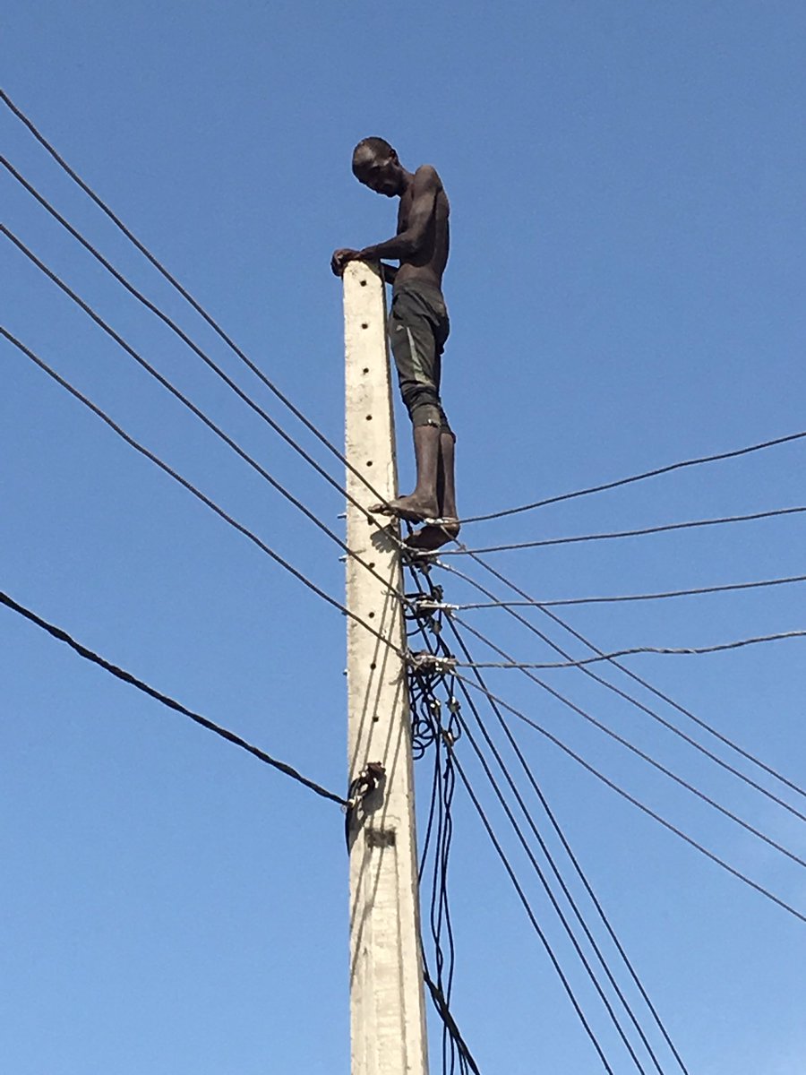 There is serious confusion, as authorities seem to be at a loss for what to do to bring down the suicidal man who made news this morning when he climbed an electricity pole and refused to come down.