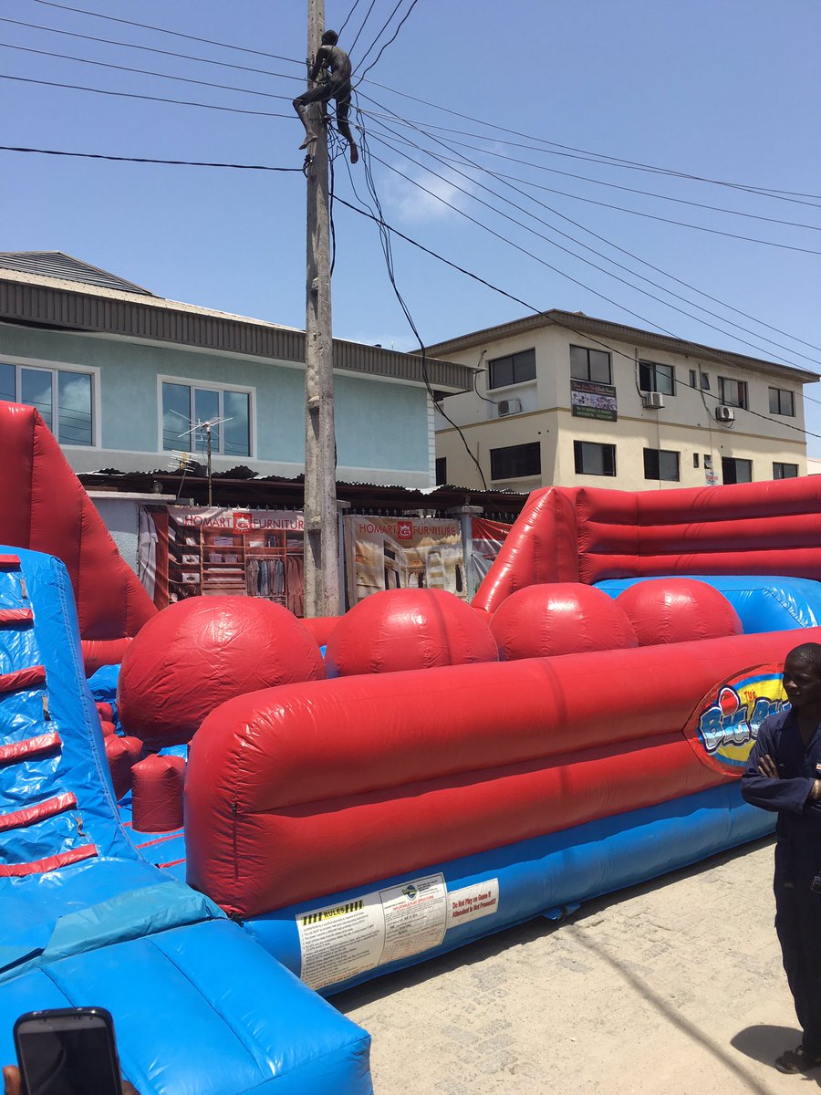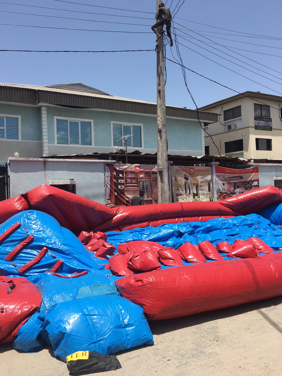 Now, the bouncy castle has been deflated and firefighters have push-started their truck and left the scene. Even PHCN officials and the policemen on ground have dusted their buttocks and have left the area, presumably to go back to their normal businesses.