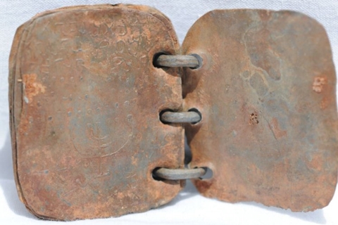 The metal ‘pages’, held together like a ring binder, were found in Jordan in around 2008 and make reference to Christ and his disciples.